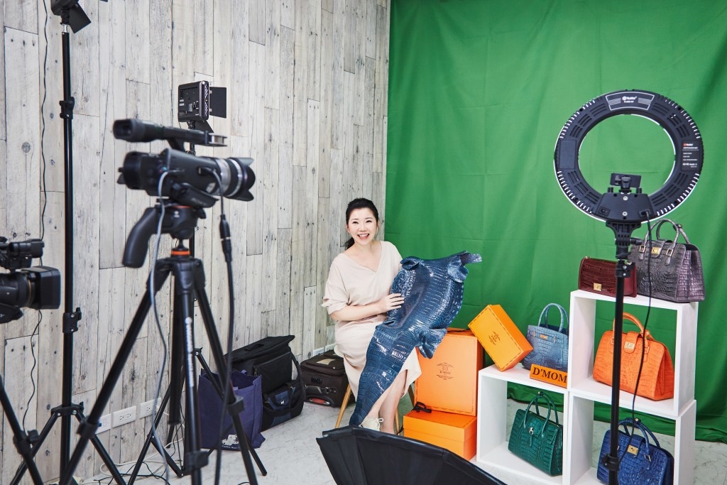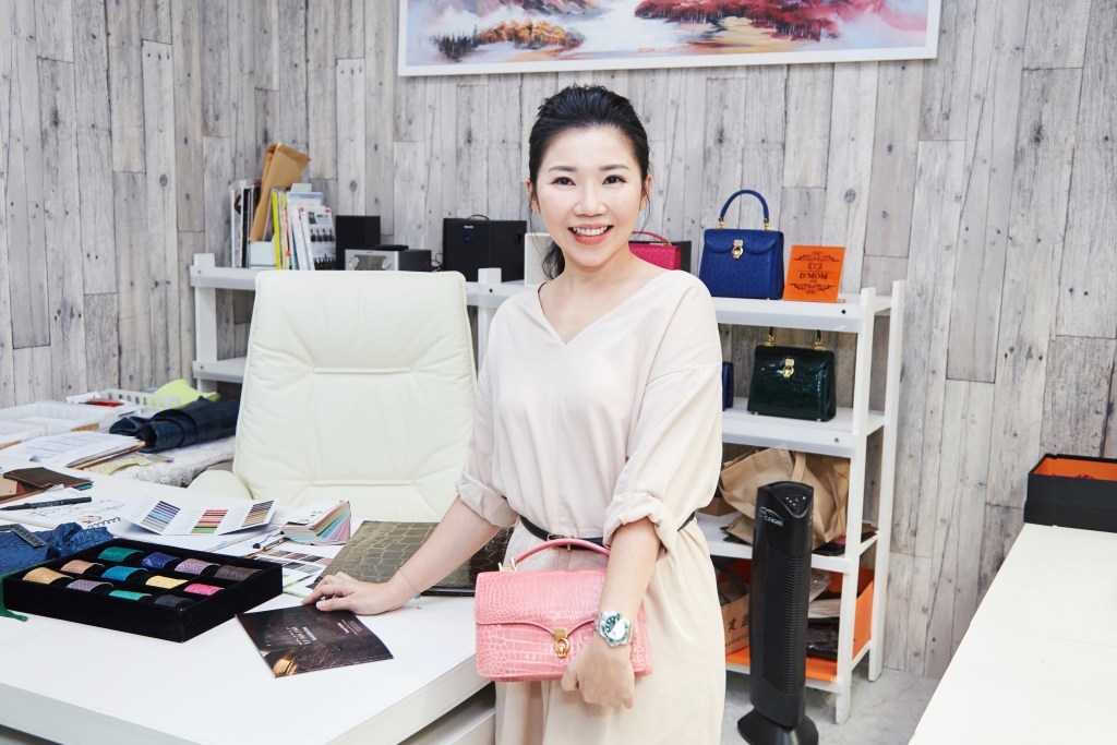 身為D'MOM的品牌總監,孫嘉欣對於皮革的掌握度必須非常充分。由於鱷魚包的製程是從南美洲哥倫比亞的上游養殖,再送到新加坡的皮革製造商,經過泡藥水、褪色、去味、剷皮、浸泡、晾乾、上漿等處理步驟,最後才能進入設計生產的階段。談起每一個環節,孫嘉欣都瞭若指掌,儼然是個鱷魚皮革專家。